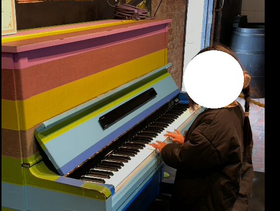 赤レンガとカラフルなピアノが映えて、とても良い写真が撮れました。